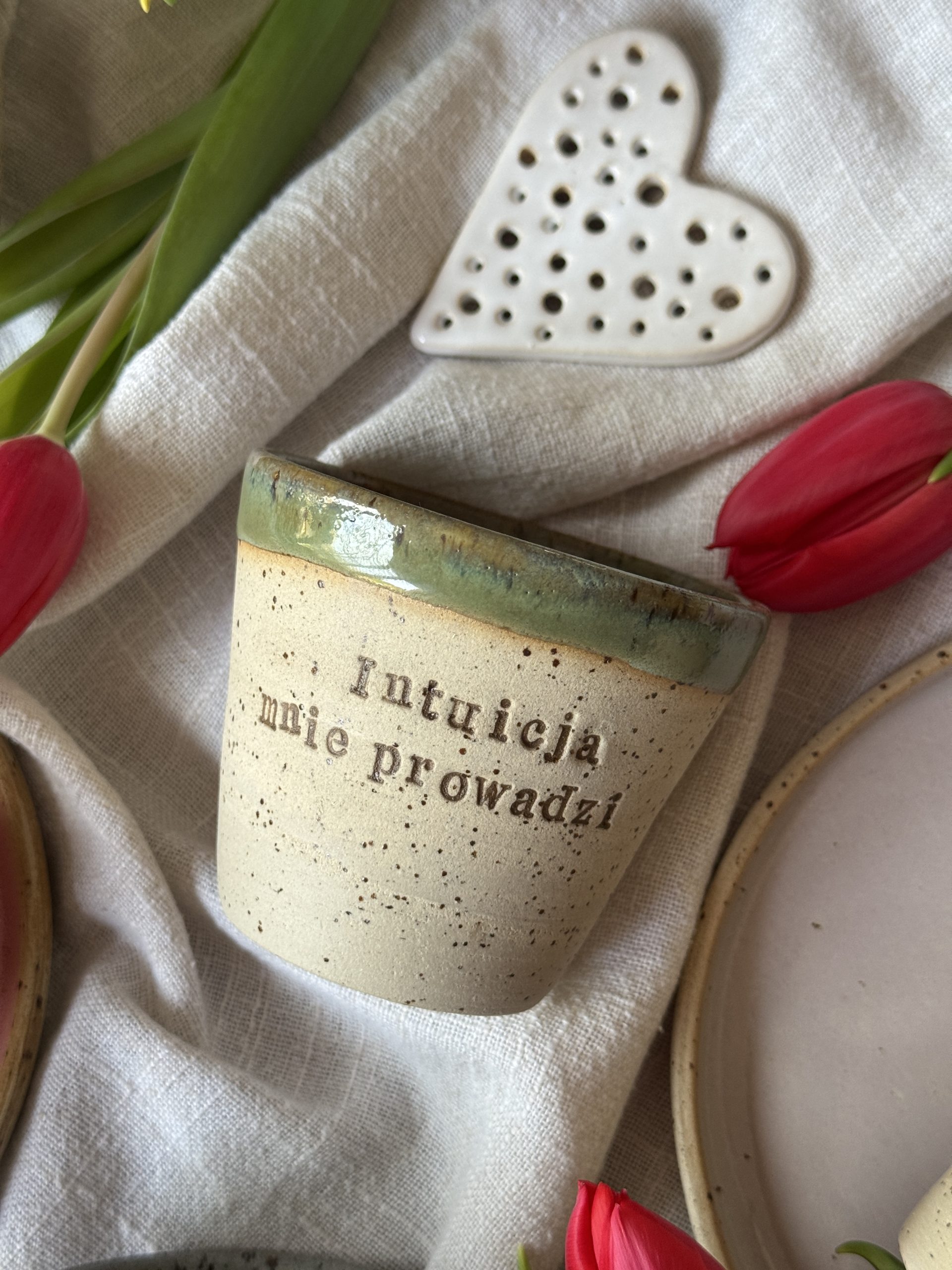 Każdy kubek powstaje ręcznie – z uważnością i szczerą intencją i zanim trafi w Twoje dłonie, wypełnia się spokojem, harmonią, czułością i autentycznością.