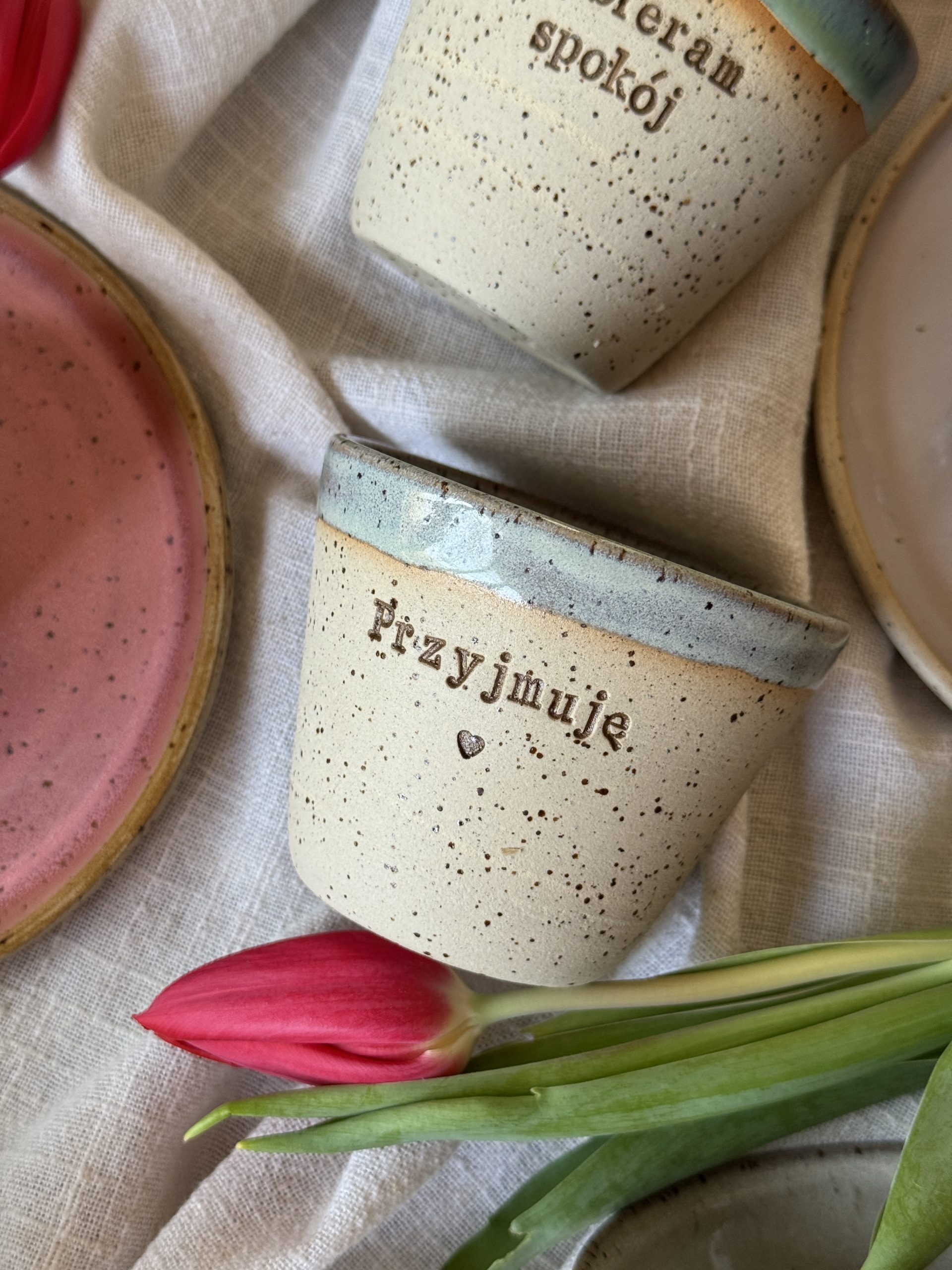Każdy kubek powstaje ręcznie – z uważnością i szczerą intencją i zanim trafi w Twoje dłonie, wypełnia się spokojem, harmonią, czułością i autentycznością.